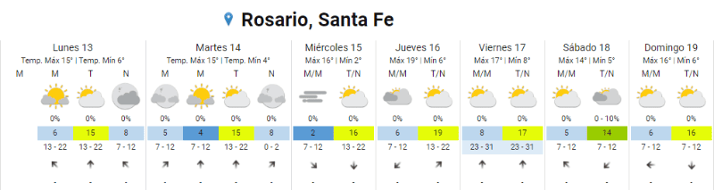 Este lunes Rosario amaneció con una sensación térmica en 0, el día más frío en lo que va del año. La semana comienza con un otoño que se muestra fuerte, casi invernal. Según el Servicio Meteorológico Nacional, la mínima era de 3 grados y máxima prevista es de 15 grados con un cielo parcialmente nublado.