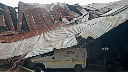 Colonia Caroya: por el temporal voló el techo del depósito de la bodega La Caroyense